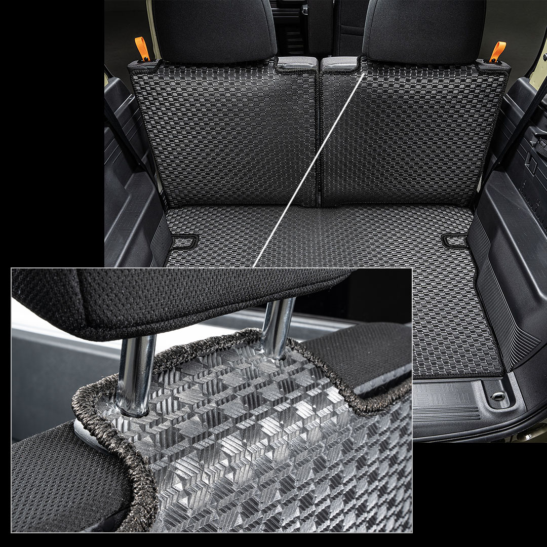 「 助手席背面専用マット 」を「 ロングラゲッジマット 」と組み合わせて使用することで助手席までラゲッジスペースとしてカバーできます。